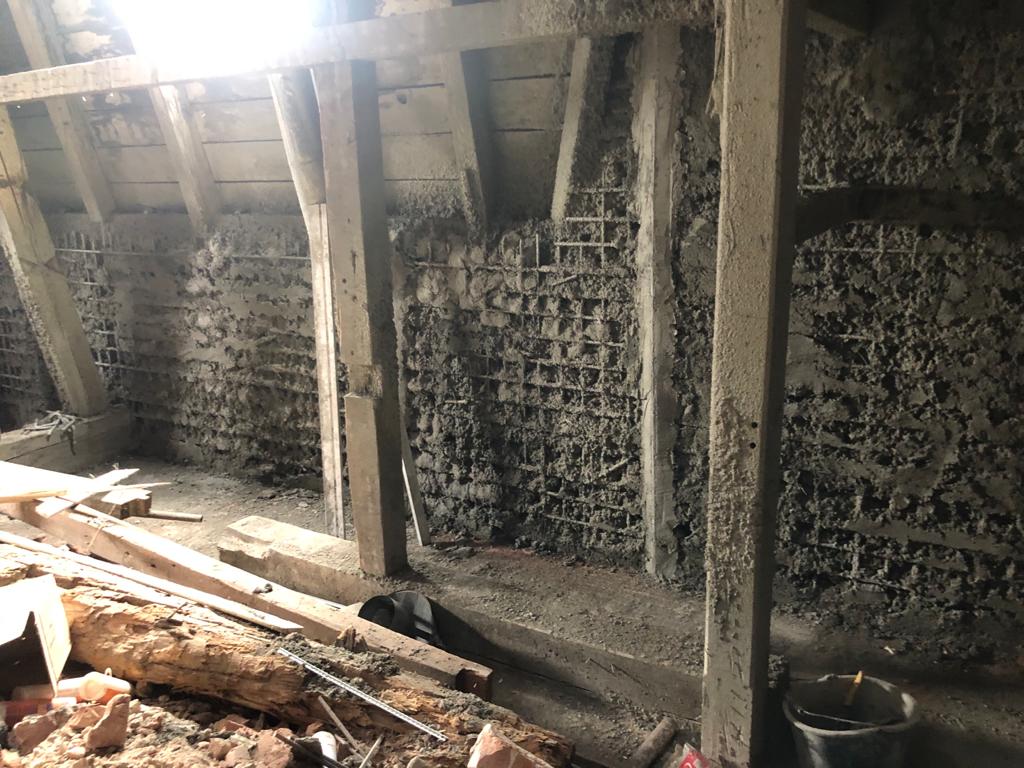 Consolidare pereti cladire istorica prin torcretare. Grosime 6-8 cm.